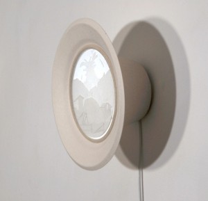 Man standing on rock, 2009, White paper layers, paper plate and light, 18 x 18 x 8.5 cm