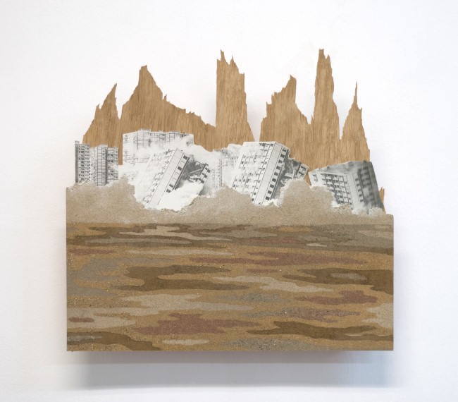 Sand, paper and veneer / 2011 / 27 x 30 cm Buildings that seem to sink in a desert sea of sand taken from different places.