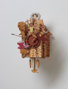 Cuckoo clock 2, 2013, Collaboration with Carl Grüttert, Wood and Quartz mechanism, 20 x 12 x 10 cm