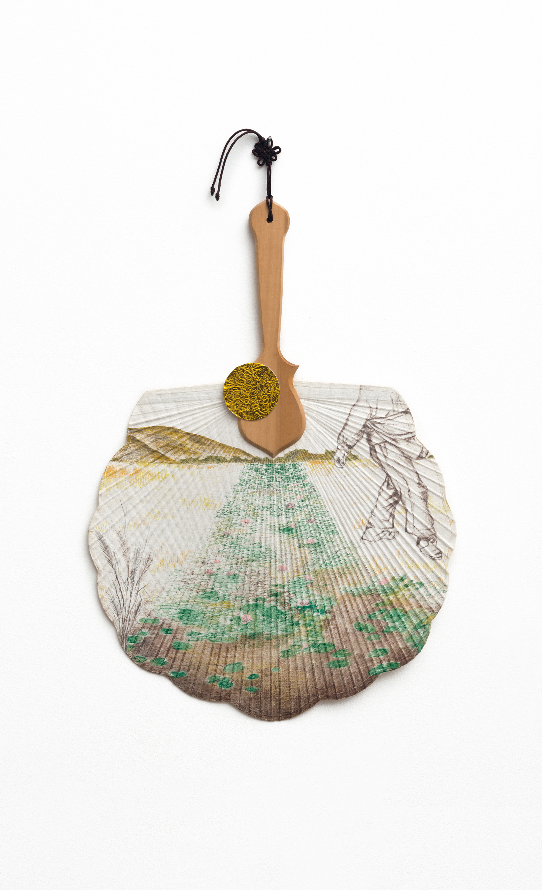 The Sower, 2015, Drawing and collage on Korean fan, 40×28 cm